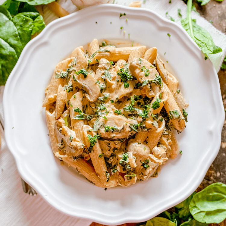 Everybody loves pasta, and if it´s a creamy pasta even better. However, creamy pasta can be very high in fat. Today I present to you the healthiest creamy pasta ever. This Creamy Spinach & Mushroom Pasta is loaded with flavors, easy to make and yes, you guessed it, super healthy.