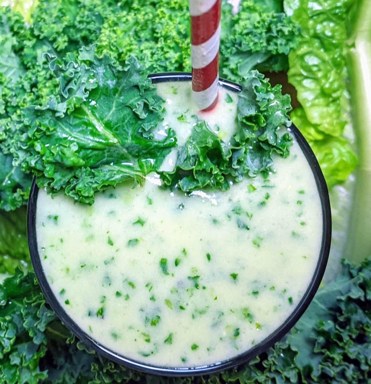- Chop the kale and romaine lettuce into smaller pieces. If you like, you can blend these first before moving onto the other ingredients.