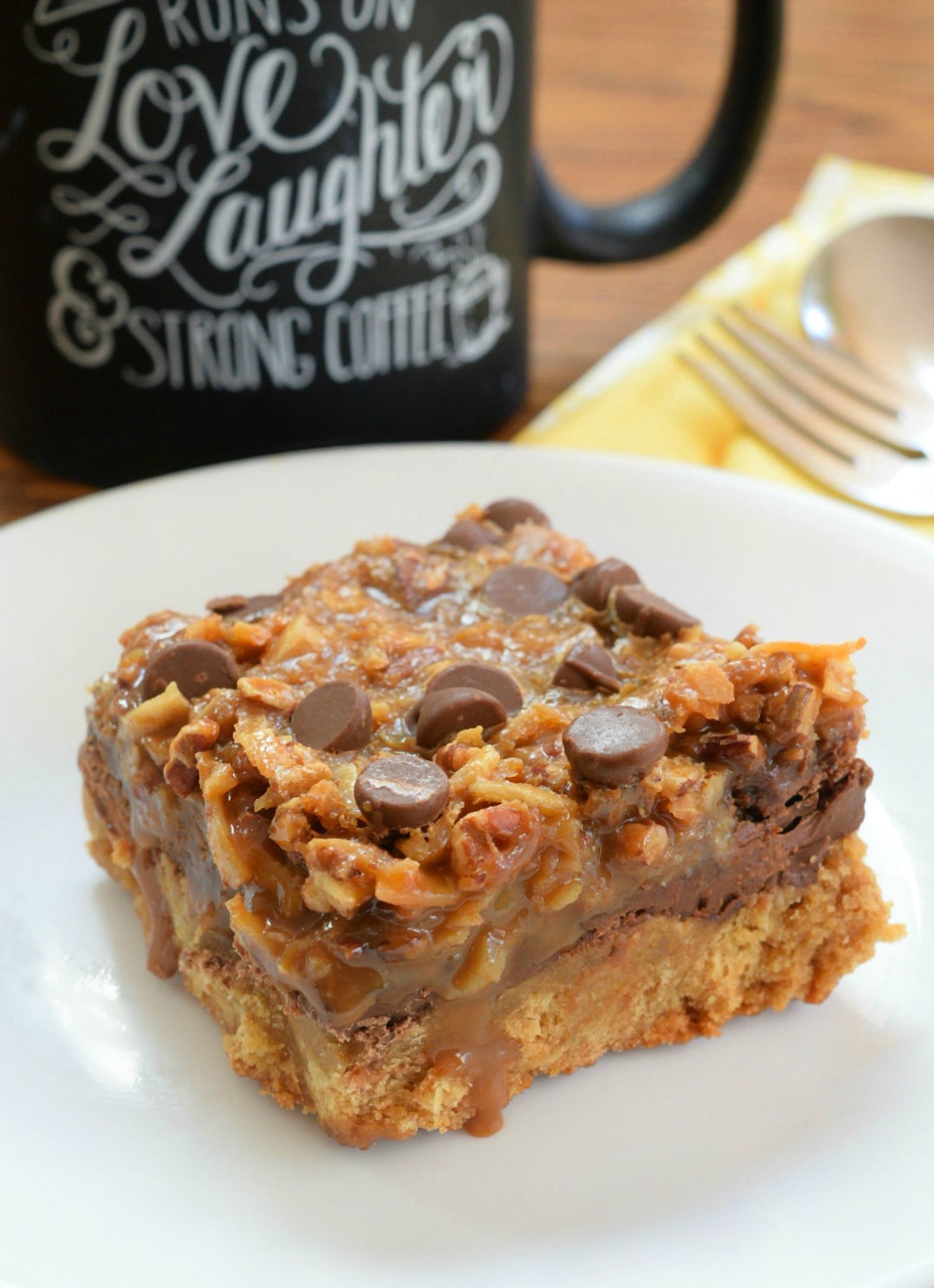 The classic recipe of Magic Bars made even sweeter with caramel condensed milk, lots of coconut, milk chocolate chips, and toasted pecans makes the ultimate sweet dessert!
