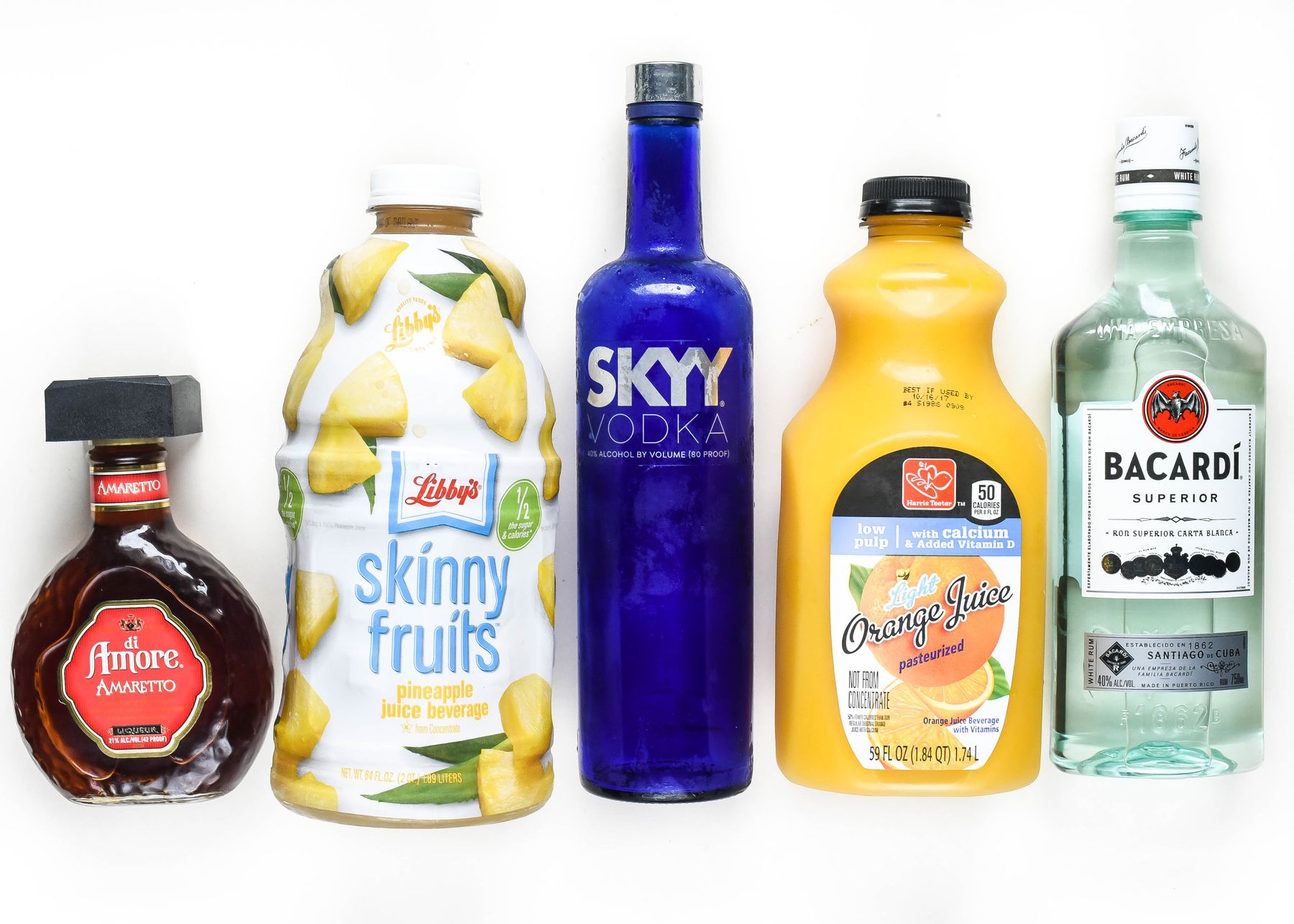 Mix together the vodka, rum, amaretto, OJ, & pineapple juice together.