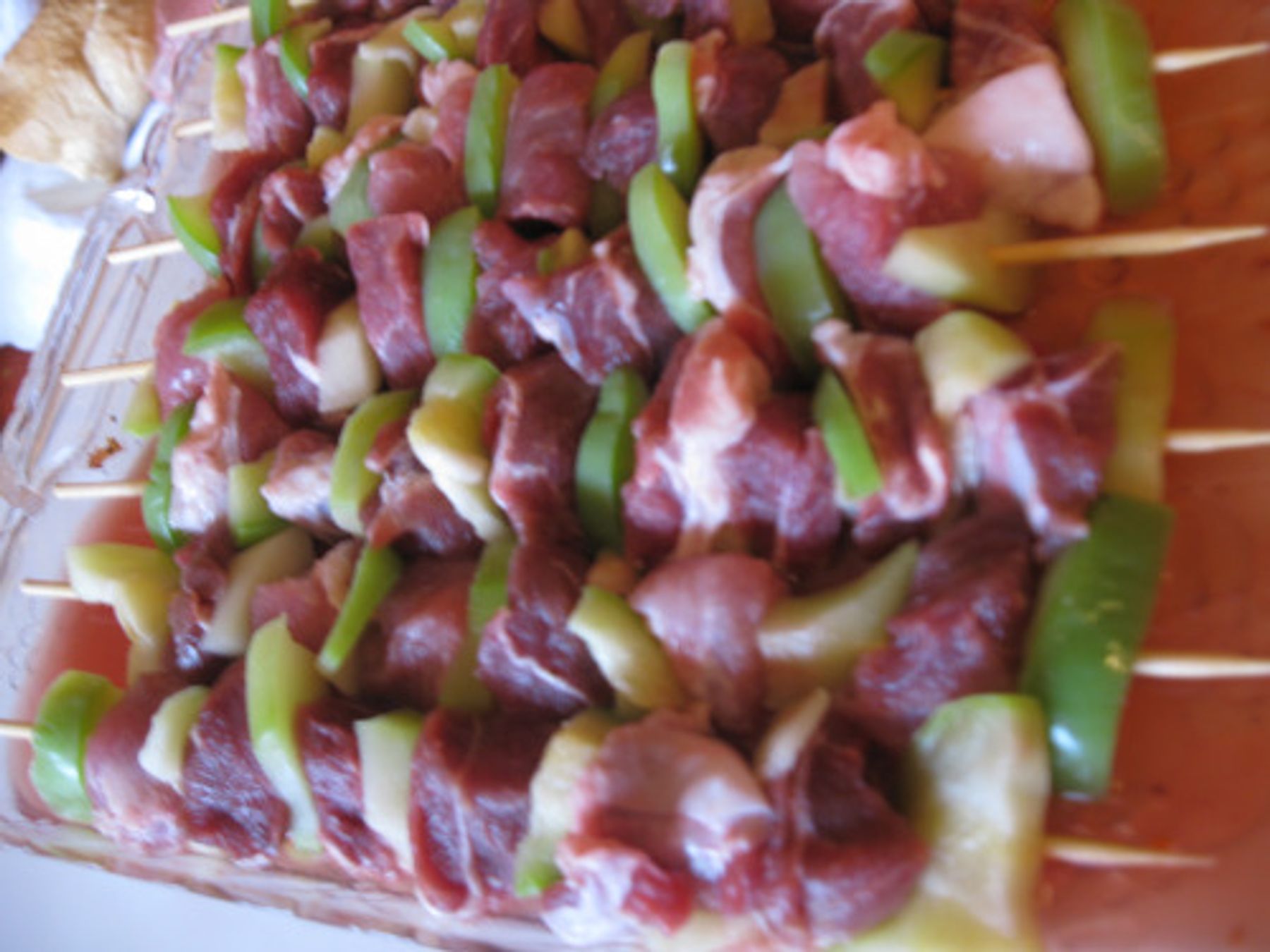 cut the cukkini in slices (possibly thick to not fall from the sticks.)