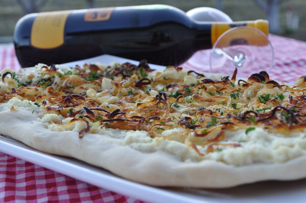 Thin Crust Ricotta Garlic & Caramelized Onions Pizza