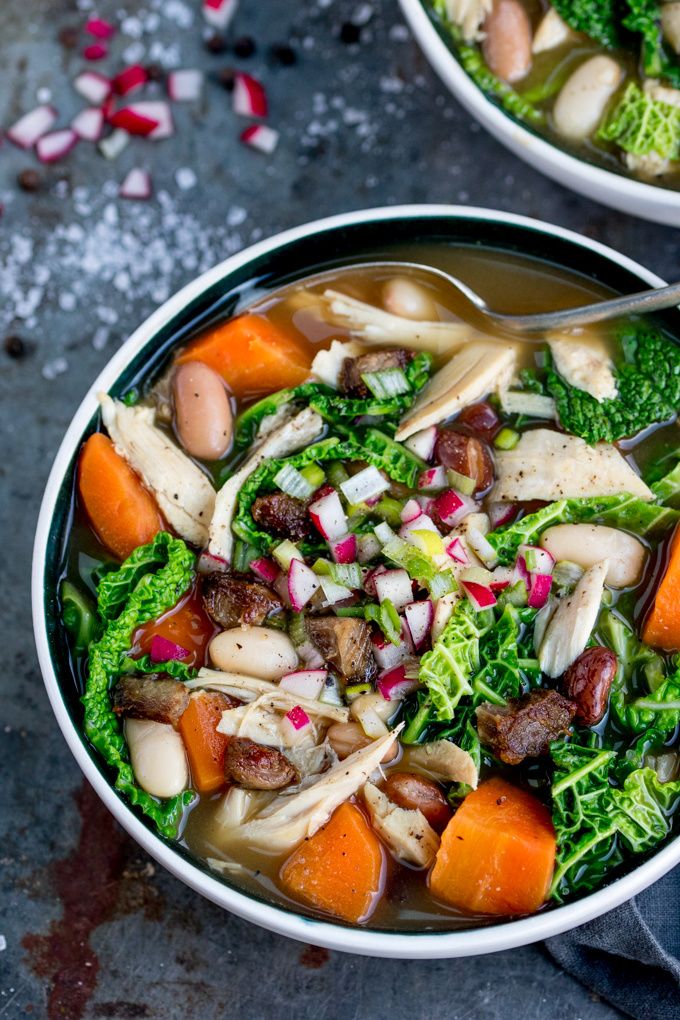 This Three Bone Soup With Veggies and Beans is a great way to make the most of your leftovers! Filling, tasty and easily made gluten free too!