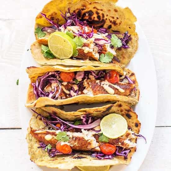 These tilapia fish tacos are made with avocado paratha flatbread. It is an oven dish that is easy to make and delicious.