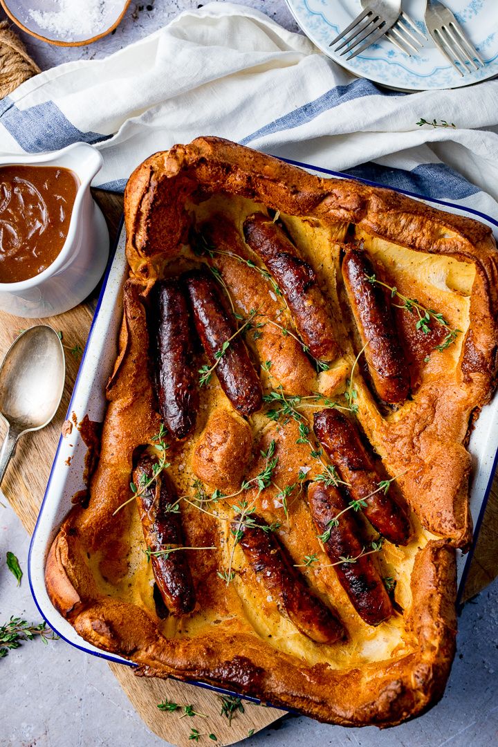 Toad in the Hole with Red Onion Gravy Nicky CorbishleyJanuary 31, 2020 39 Kitchen SanctuaryA British classic that everybody loves – this toad in the hole consists of meaty pork sausages nestled in a giant crispy Yorkshire pudding. All served up with a rich red onion gravy.Toad in the Hole with Red Onion GravySee the full directions on my site