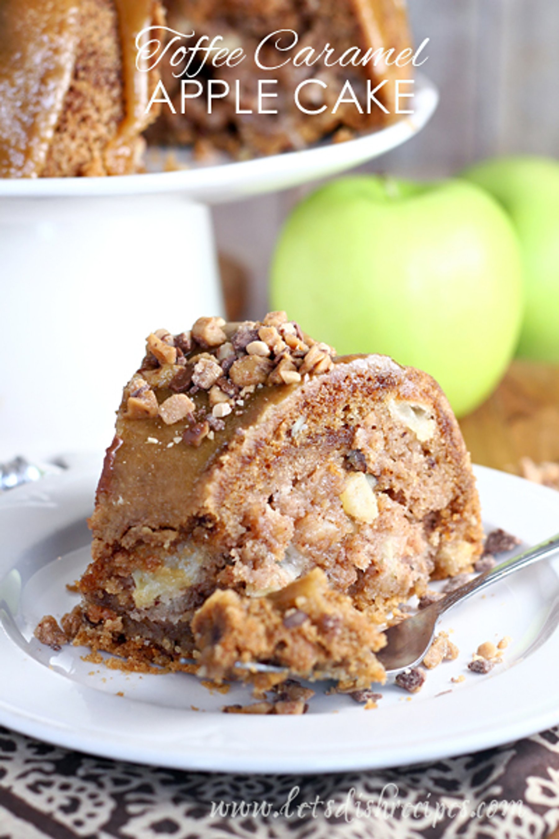 This fall bundt cake is loaded with fresh apples, pecans and sweet toffee bits, then topped off with a homemade caramel glaze.