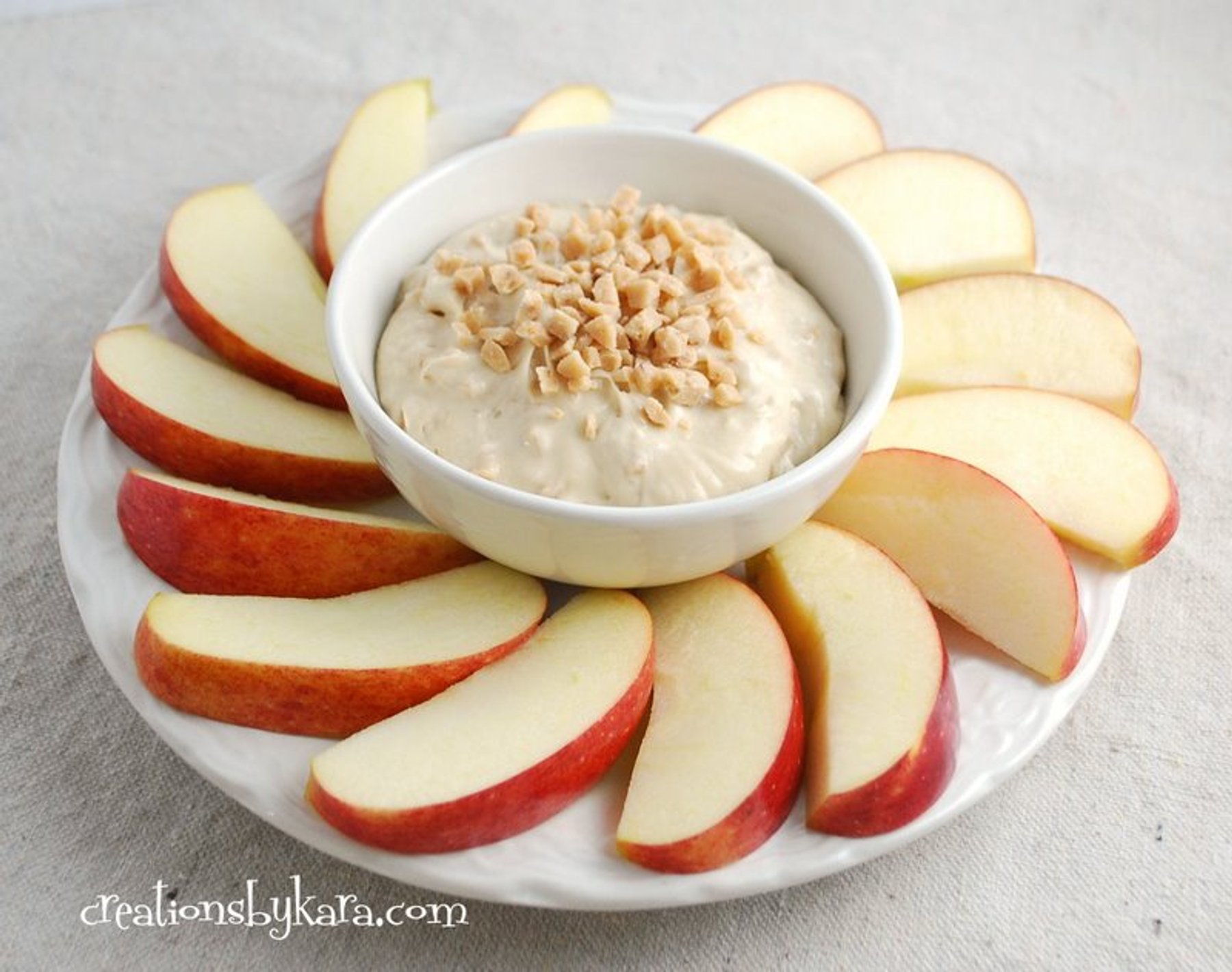 This caramel apple dip is seriously addicting. The toffee bits take it over the top. I dare you not to lick the bowl!
