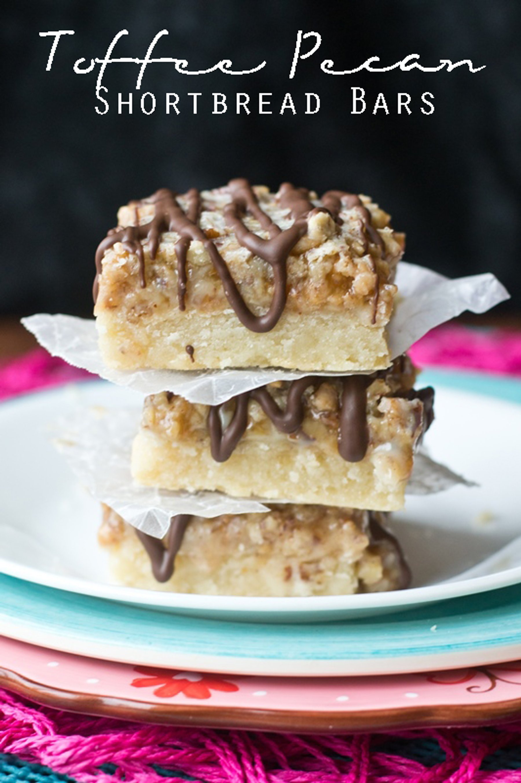 A shortbread bottom and gooey toffee and pecan layer on top make these one-bowl Toffee Pecan Shortbread Bars so decadent!