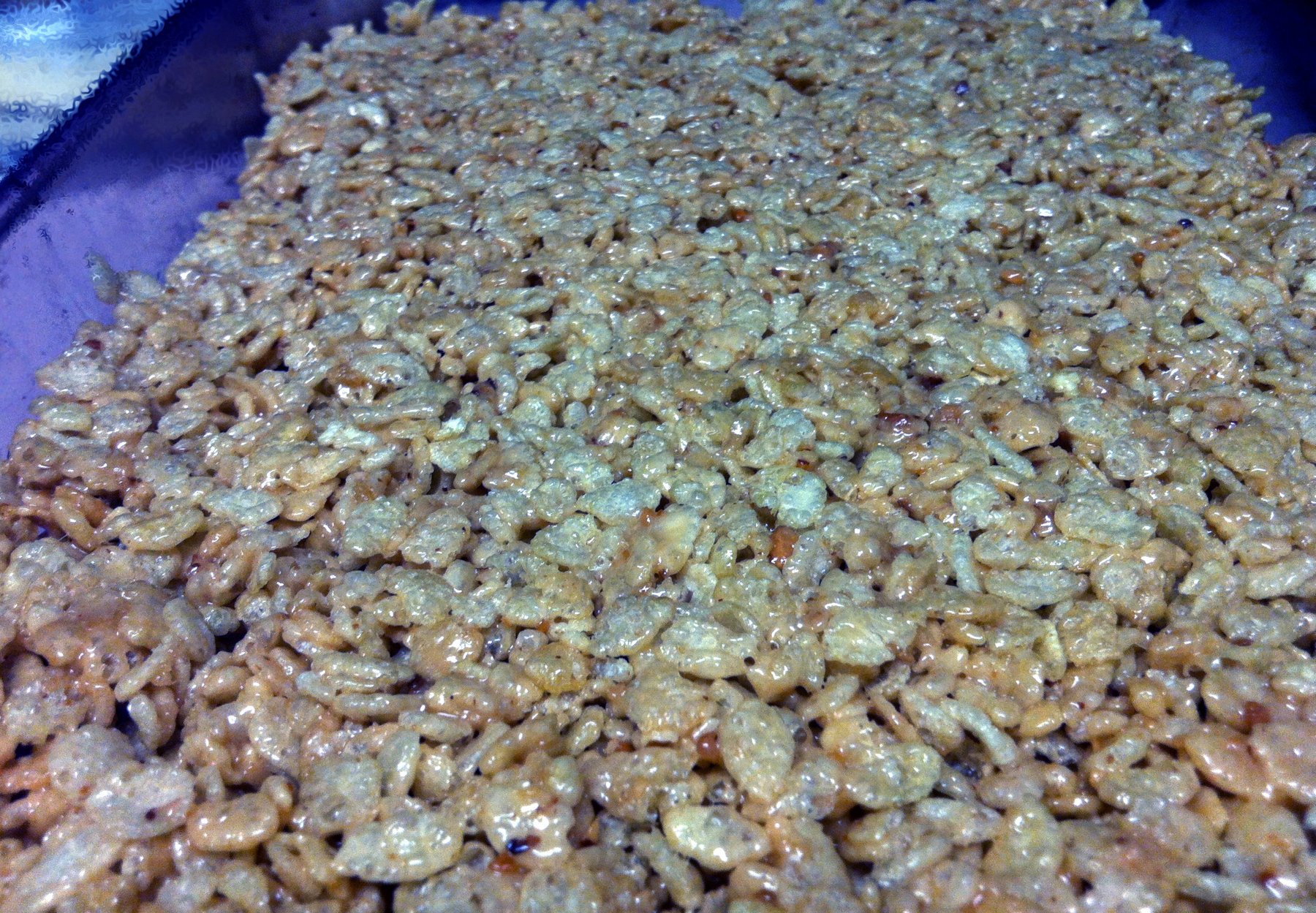 This is a twist on the beloved Rice Krispie Treats. This variation uses Heath Bits'O Brickle Toffee Bits.