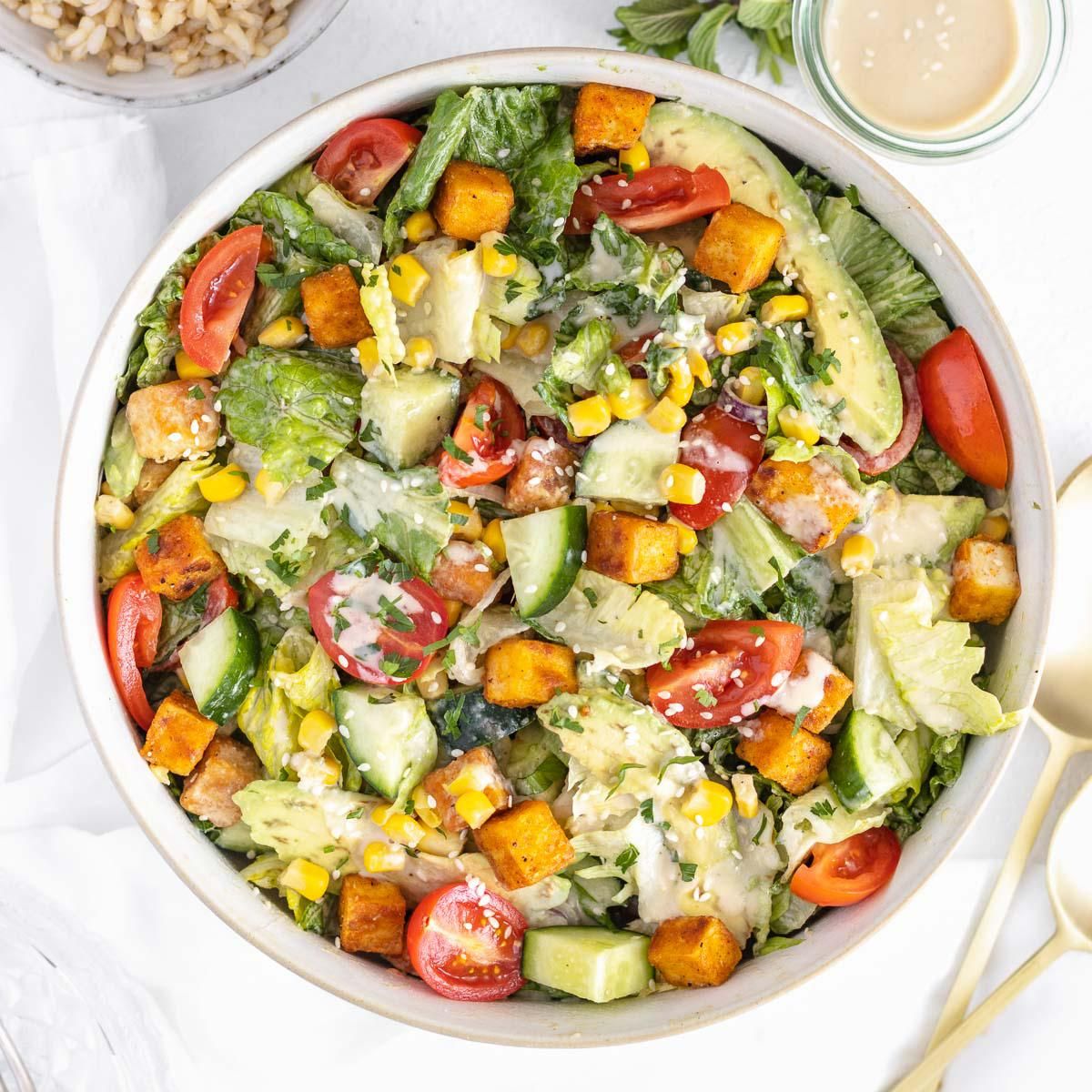 This vegan tofu salad recipe is the perfect springtime and summertime dish. Tofu’s remarkable ability to get flavorful and crunchy makes it the ideal protein choice for this healthy yet delicious meal.