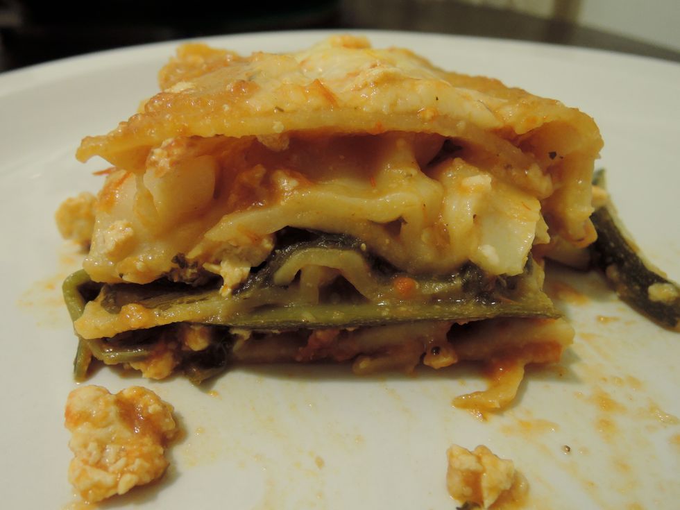 This is a variation on the lasagna my mom made for us growing up. My family is vegetarian, so she uses tofu for the filling instead of meat. I wanted to add some vegetables, so I incorporated that into this already wonderful recipe! I had a bunch of friends over, half vegetarians and half meat-eaters, and everyone loved it!
