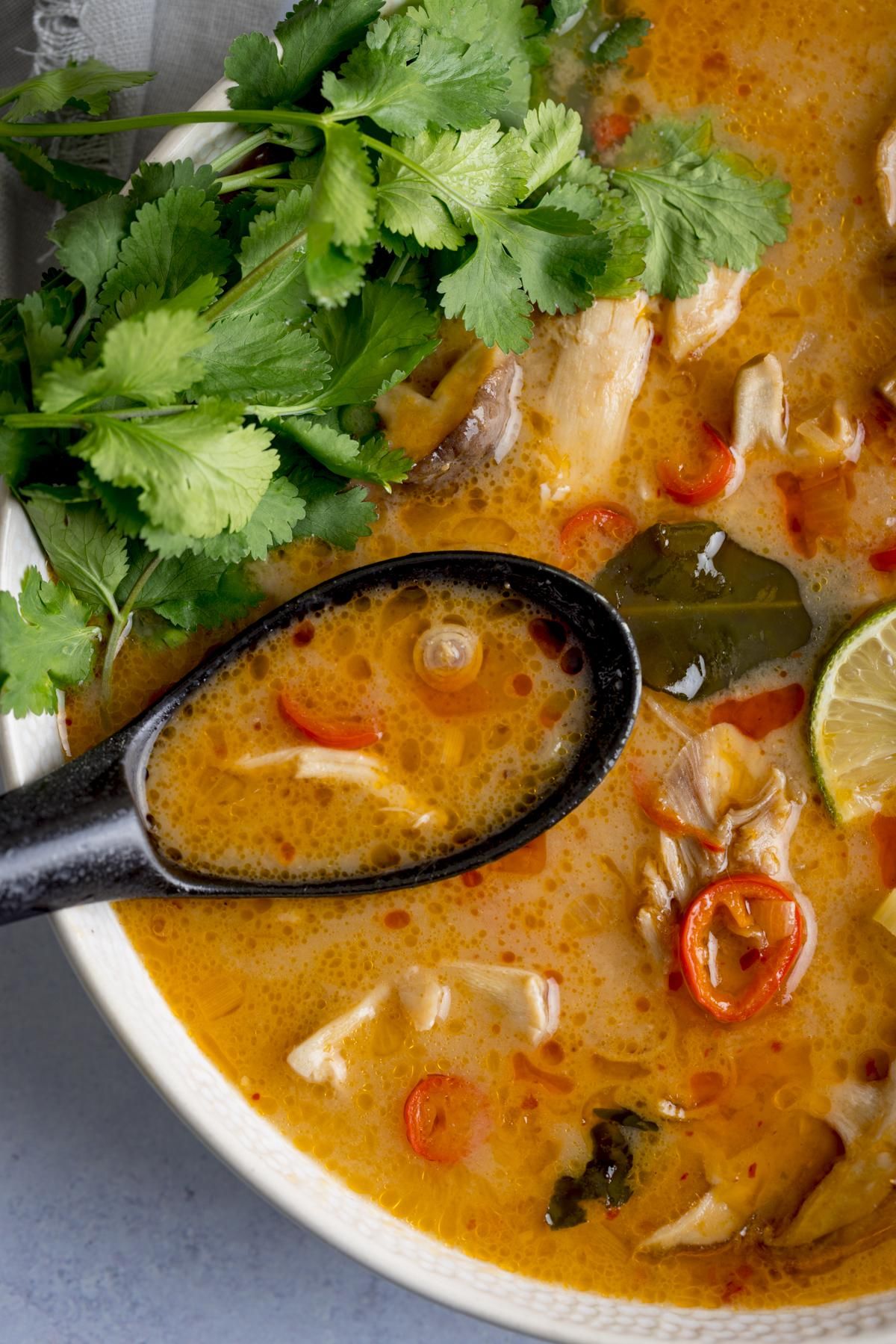 A spicy soup, made with coconut milk, galangal, lemongrass, shiitake mushrooms, chillies and chicken. I'm not kidding, it will blow your mind!
