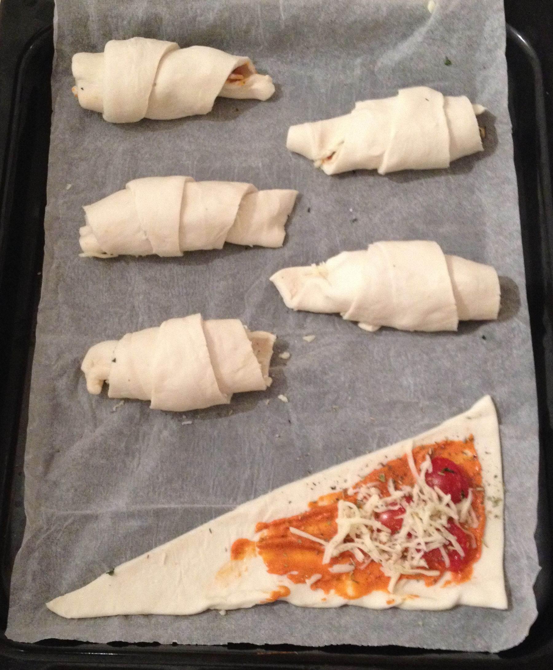 Italy meets France with these freshly baked croissants filled with cherry tomatoes, mozzarella and basil.