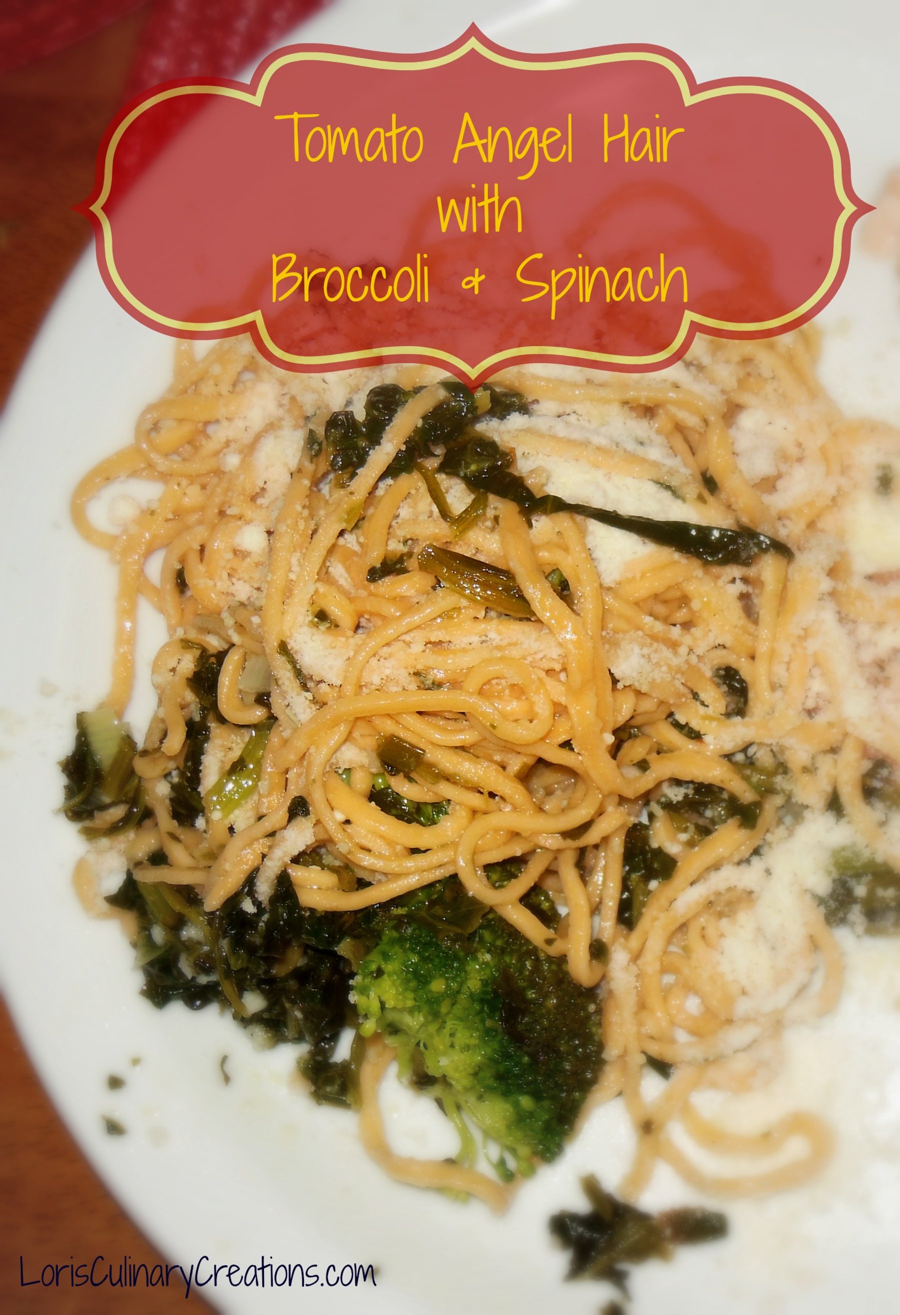 Tomato Angel Hair Pasta with Spinach & Broccoli
