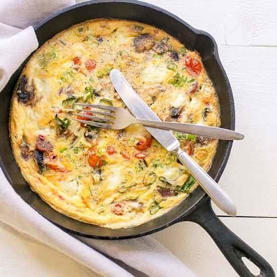 You can easy make this tomato feta frittata with eggs, fresh vegetables, cheese and salami. It tastes so good you will want it again and again.