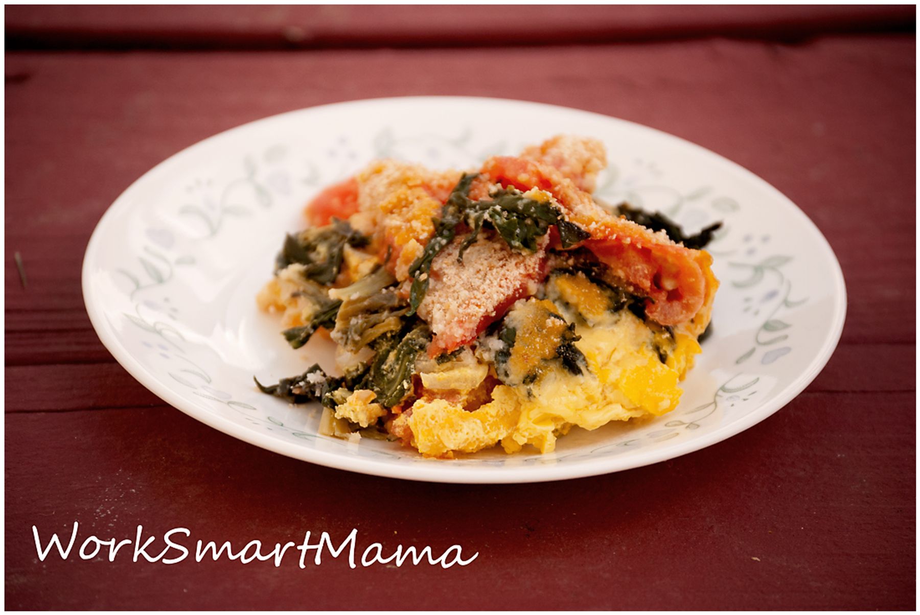 Super easy summer casserole. Its a great way to use some of the tomatoes out of your summer garden! I like to make this as a side for dinner, but it is wonderful on its own and makes a great breakfast option too!