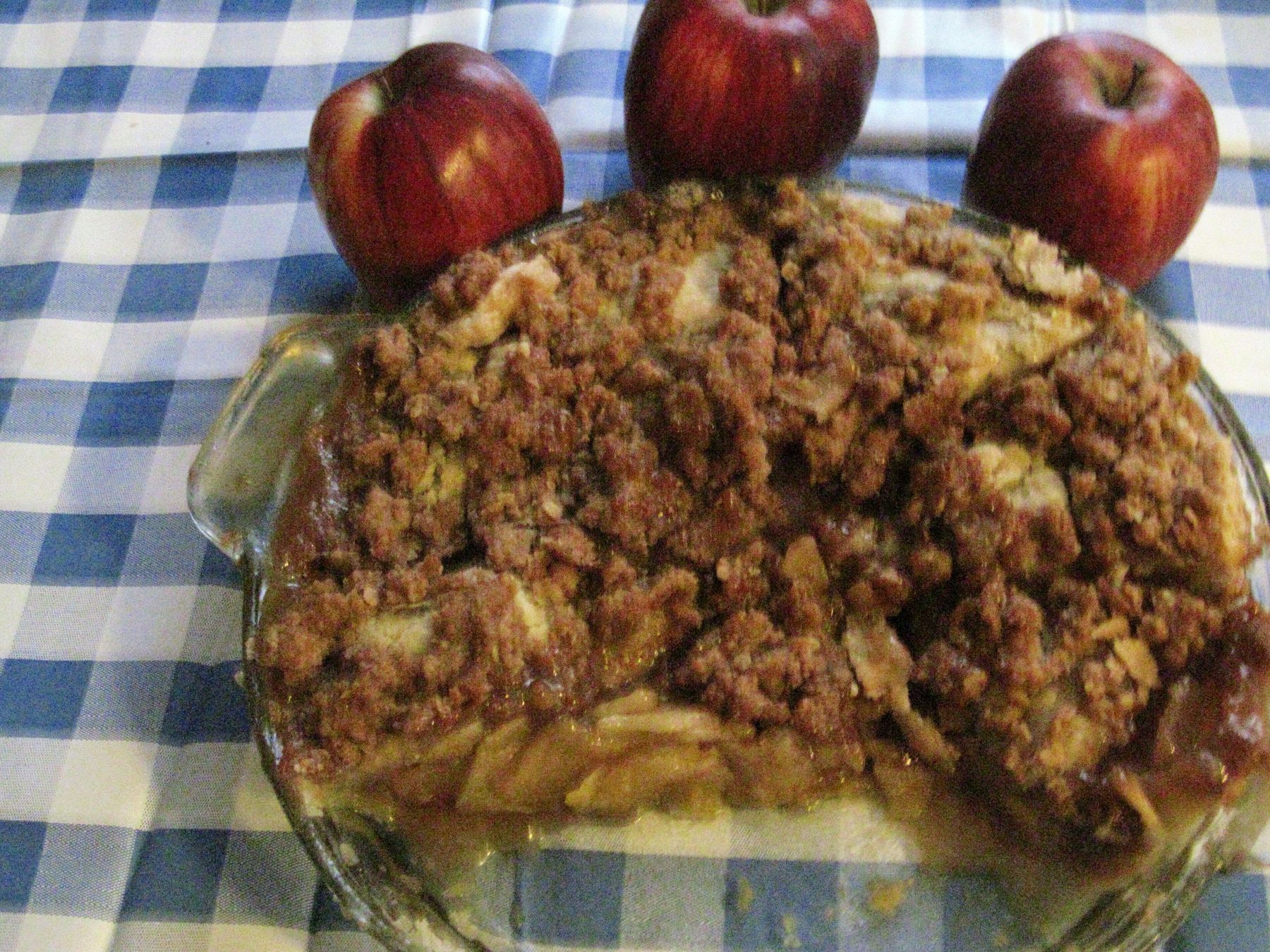 I have made many good apple pies. This one has a yummy cinnamon crispy fritter top and soft bottom with apples I peeled, sliced and cored myself.