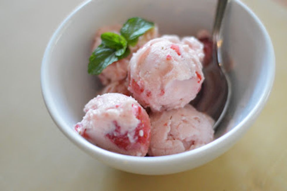 Fresh strawberries mixed in with creamy frozen yogurt - so easy and good (good for you, too!).