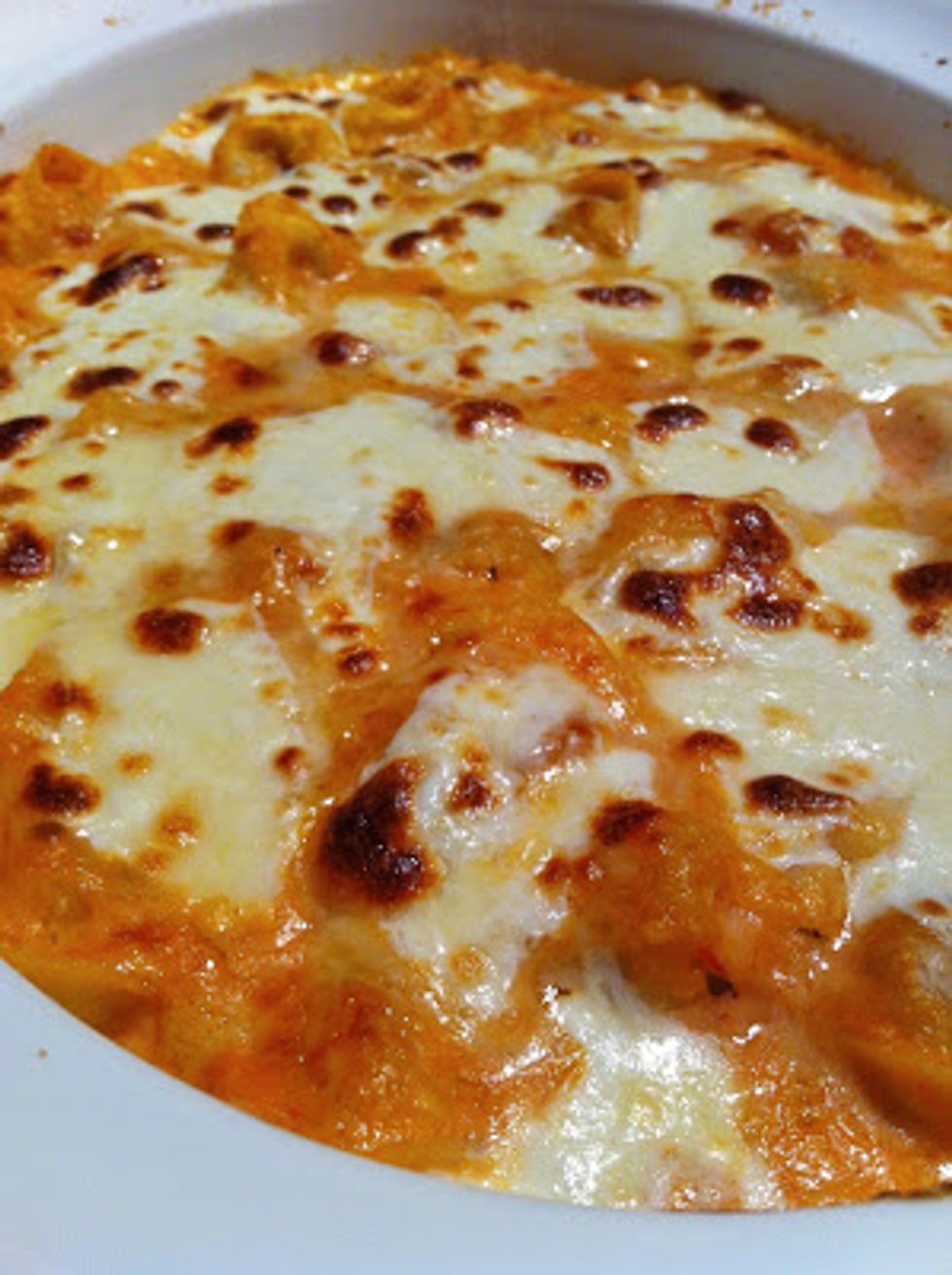 Cook the tortellini according to package directions. In the meantime, preheat the oven to 350 degrees and in a medium bowl, mix the 2 sauces together. Drain the tortellini and toss the pasta together with...
