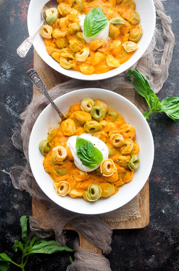 Tortellini with Roasted Tomato Vodka Sauce is an easy foolproof recipe that's perfect for the weekday or weeknight meals. The vodka sauce is a delicious combination of roasted tomato, onion, and garlic. I added bacon to the sauce because bacon. Top off the meal with burrata cheese and you have an outstanding recipe that's sure to please!