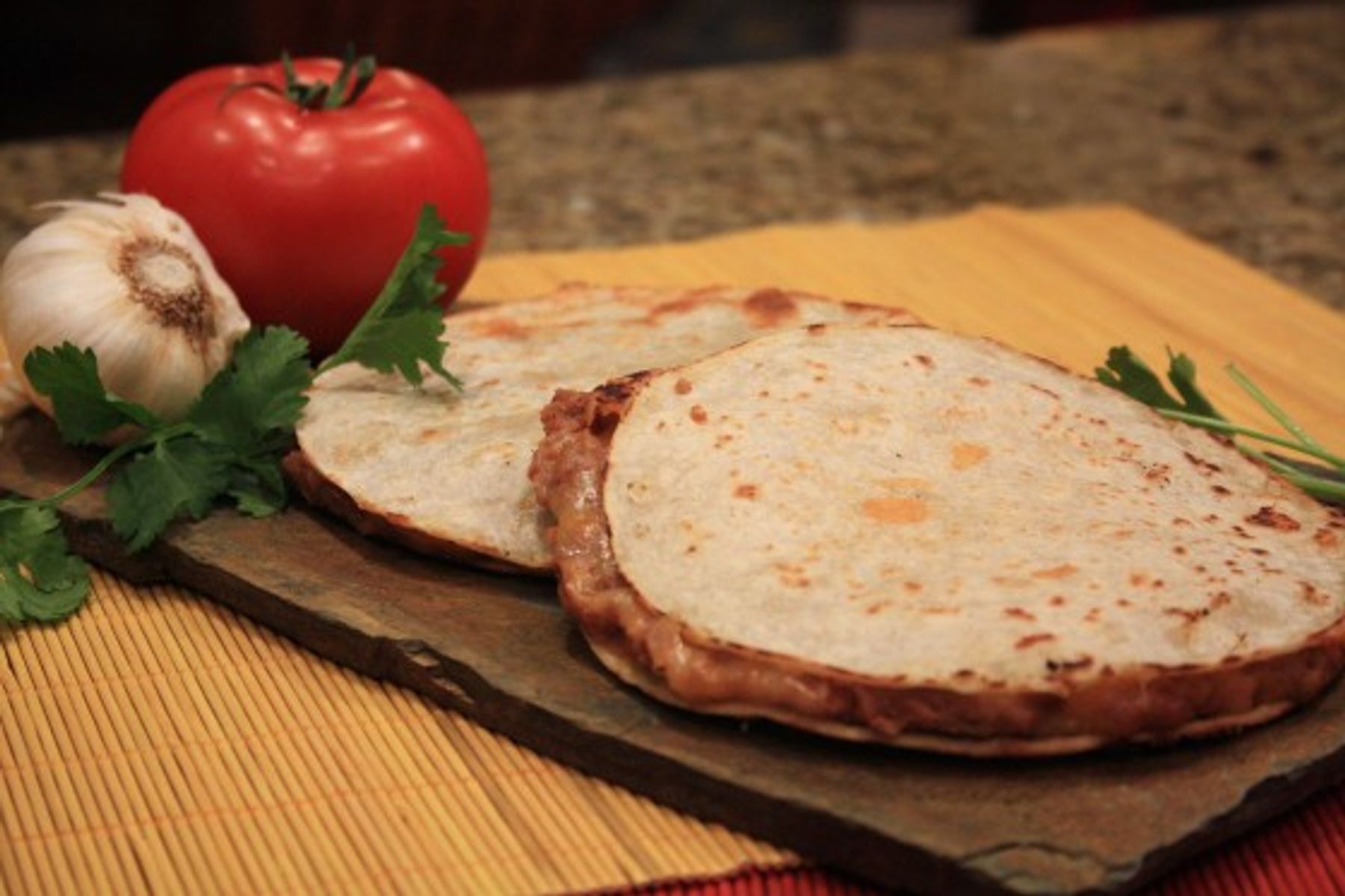 This recipe has been in our family for years and years. My nephew Justin became a real expert at making these and is responsible for pushing it by making it at almost every family gathering he could. It is really quite simple, just two layers of corn tortillas filled with beans and cheese and put on the griddle till tortillas are golden and the insides hot and melted. Serve with fresh guacamole and hot sauce. Easy. Affordable. Filling.