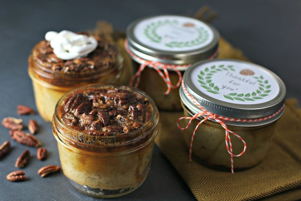 Traditional Pecan Pie in a Jar is deeply toasted, sweet, luxurious flavor. Just break through the caramelized, crispy pecan topping to expose the amber colored rich filling and flaky crust inside. Marvelous personalized dessert with printable.