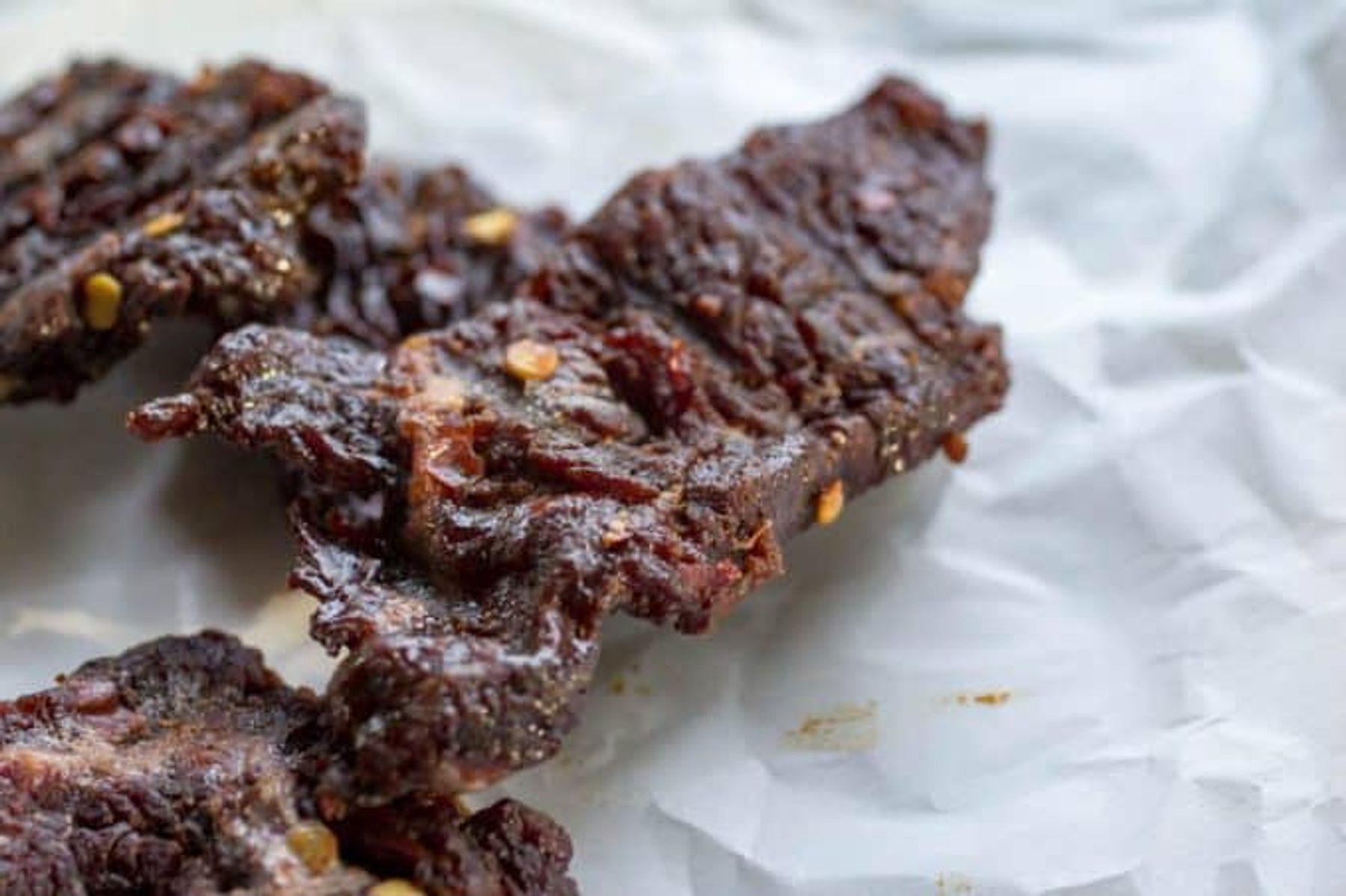 This easy Traeger smoked beef jerky is much more economical than store-bought jerky, and tastes much better too. This version packs some heat, so if you aren't into that make sure and omit the sriracha and rep pepper flakes!