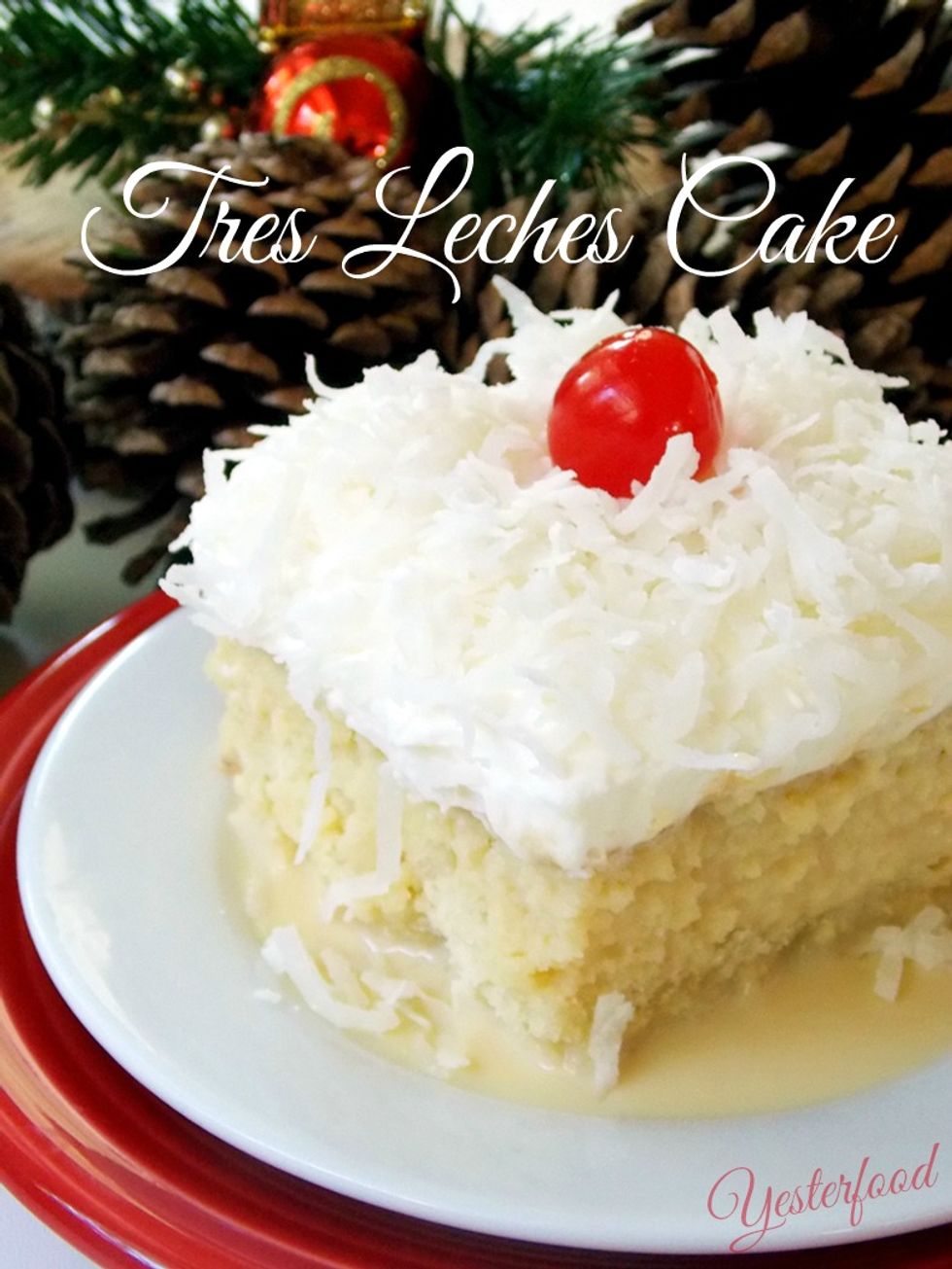 Tres Leches ("three milks") Cake is a sponge cake that has been soaked in a luscious mixture of three milks: evaporated milk, sweetened condensed milk, and cream. It's a popular special occasion cake, such as for Christmas and birthdays. It's a fun cake to serve- people are usually fascinated with the idea of soaking a cake in something, and then they fall in love with the rich, cool, sweet, creamy taste. Never mushy, always perfectly moist, this is a wonderful cake to have i