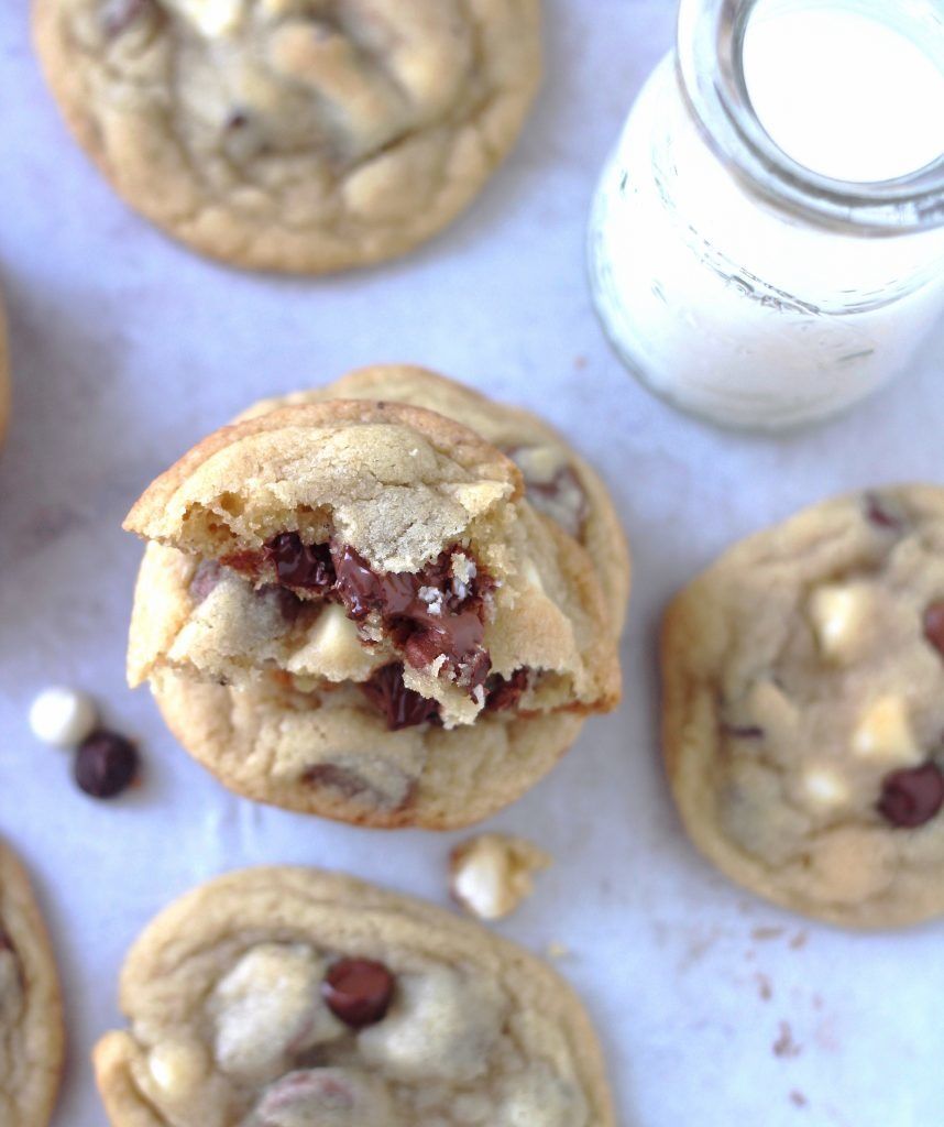 Buttery, slightly crispy & chewy and loaded with three different kinds of chocolate chips.