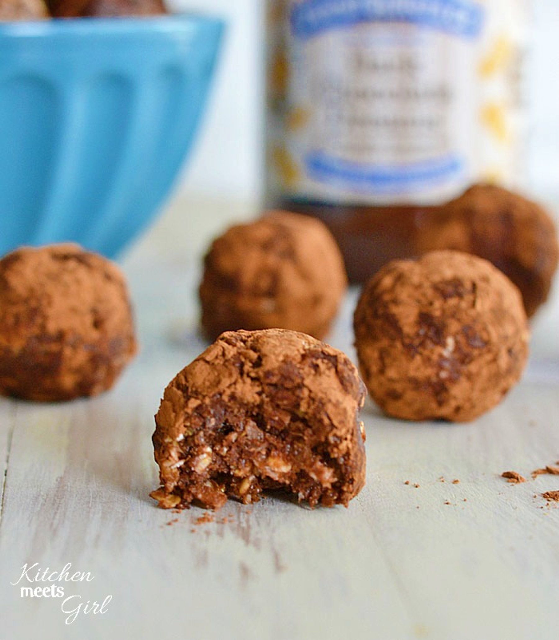 Stir all ingredients except for the cocoa powder together in a medium bowl until combined. Allow the mixture to chill for about 30 minutes in the refrigerator. Once chilled, roll into small balls - I used a...