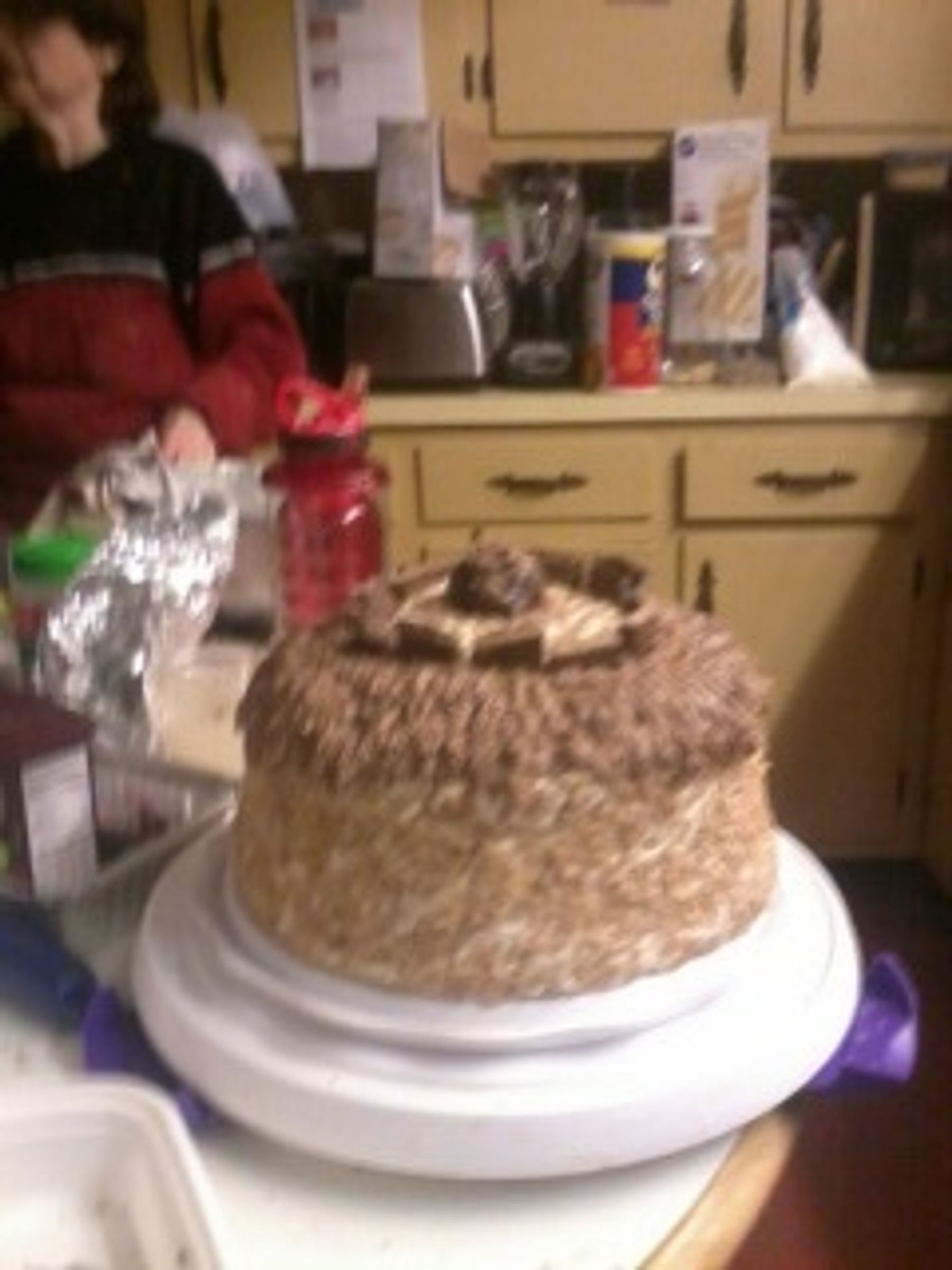 the cake was beautiful made and moist . the Chocolate was intense and rich, but good The Swiss Toffee Buttercream Icing , and the coconut Chocolate cover cherries, in which I use for plating my cake the cake was delicious, and received rave reviews from several clients and friends. now I am sumitting this to you