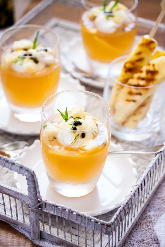 Sweet and refreshing Tropical Fruit Juice Jelly is an easy homemade jelly topped with coconut mascarpone. By Sugar Salt Magic