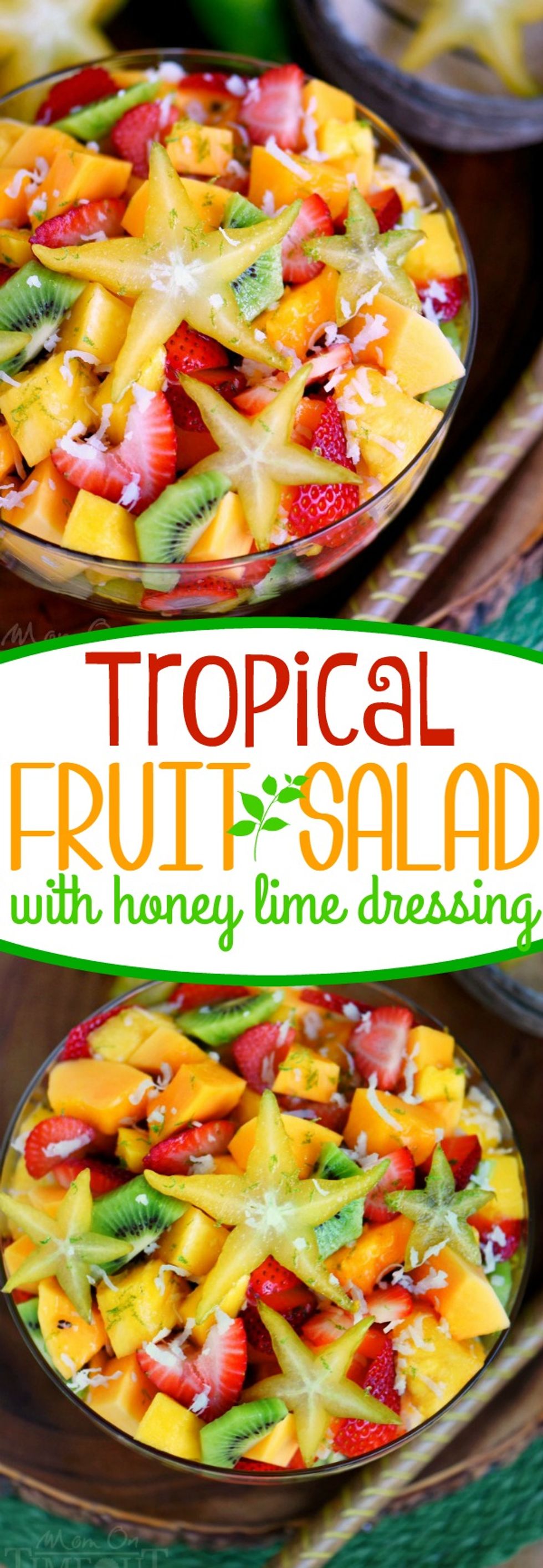 This Tropical Fruit Salad with Honey Lime Dressing is going to be the star of the show! Featuring a variety of tropical fruit and tossed with a honey lime dressing, there’s a bright burst of flavors in every bite!