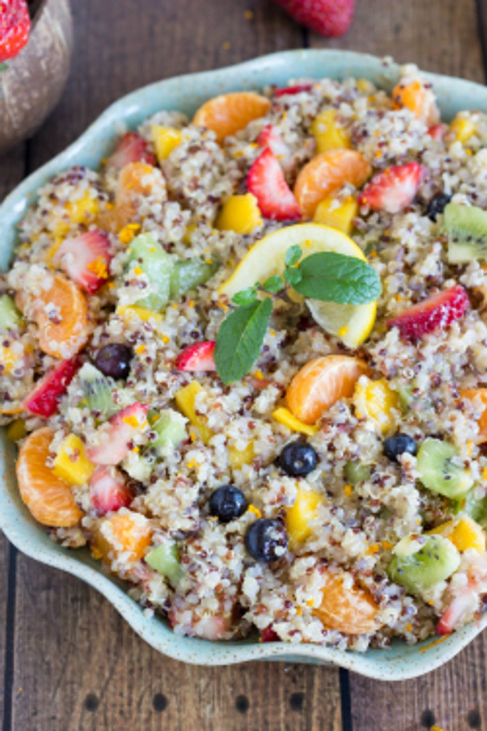 A tropical quinoa salad with a simple and tangy dressing. Great way to detox for Spring!