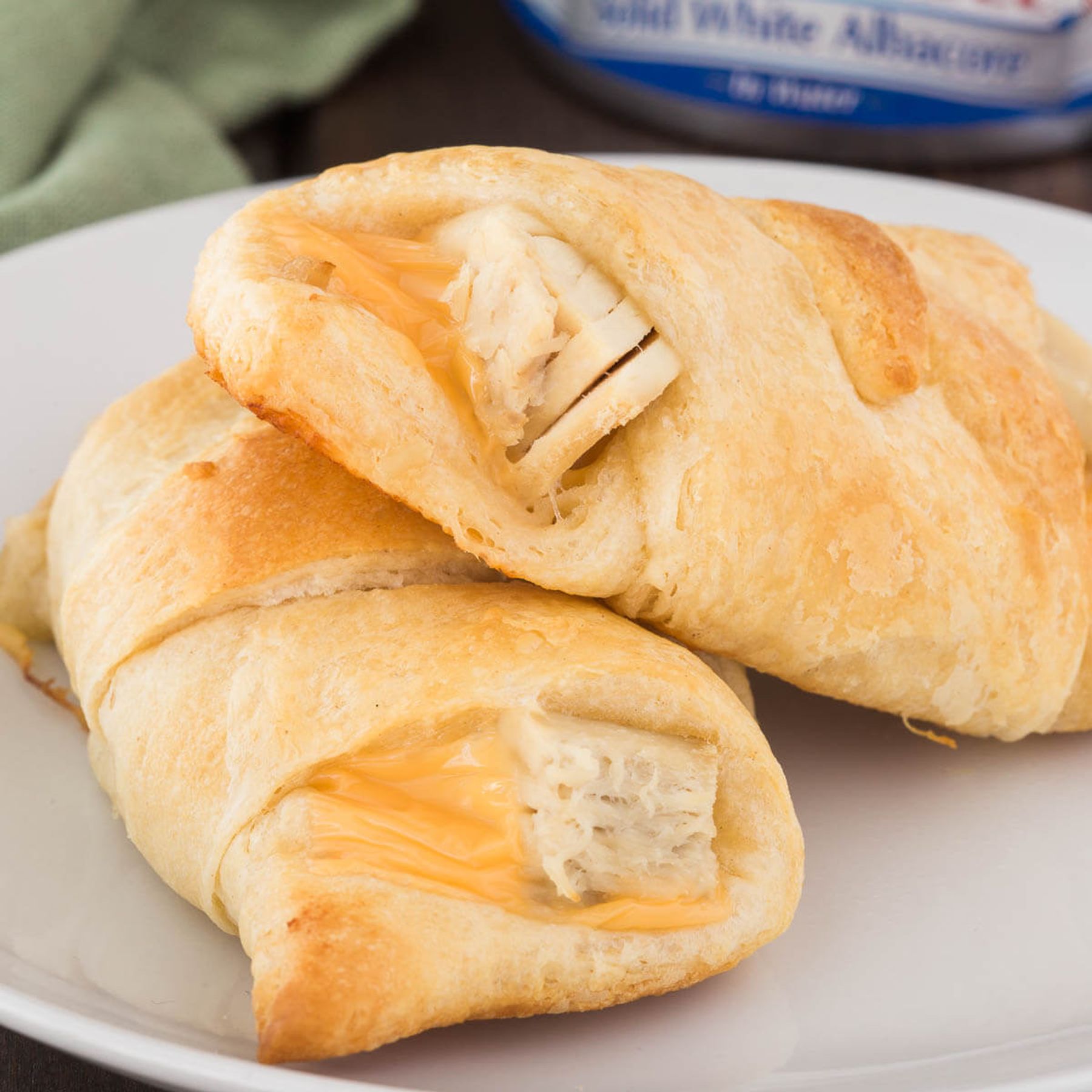 If you’re looking for a delicious after-school tuna snack, look no further. These easy Tuna Melt Crescent Rolls are a fun new take on the classic tuna melt sandwich that is sure to satisfy your kid’s hungry bellies. Refrigerated crescent dough is stuffed with slices of American cheese and hearty chunks of Albacore Tuna. It’s the perfect recipe for a quick fix snack