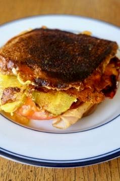 Loaded grilled cheese and turkey sandwich.