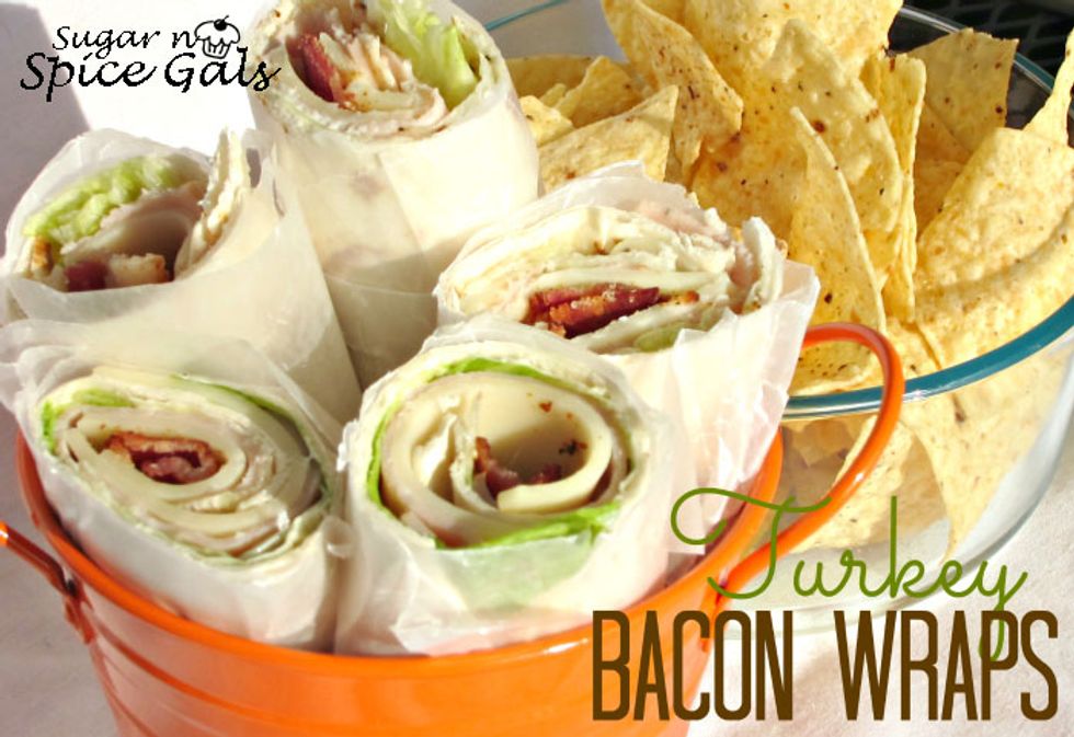 On a piece of wax paper, lay the tortilla and spread the sauce on top. Add in the following order: Lettuce, turkey, cheese, bacon, and onion. Fold the sides in about two inches on each side toward the...