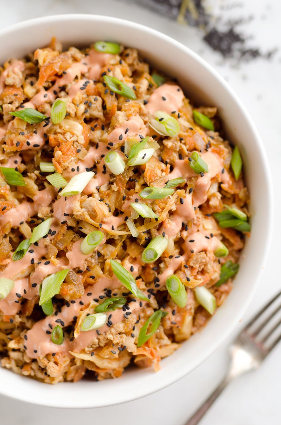 Turkey Egg Roll Bowl with Creamy Sriracha