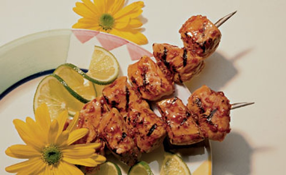 Mix together the soda, oil, sauce and horseradish power. Cut up turkey into 2" cubes then put into either a plastic zip-lock bag or dish. Pour liquid over the top and turn until well coated.