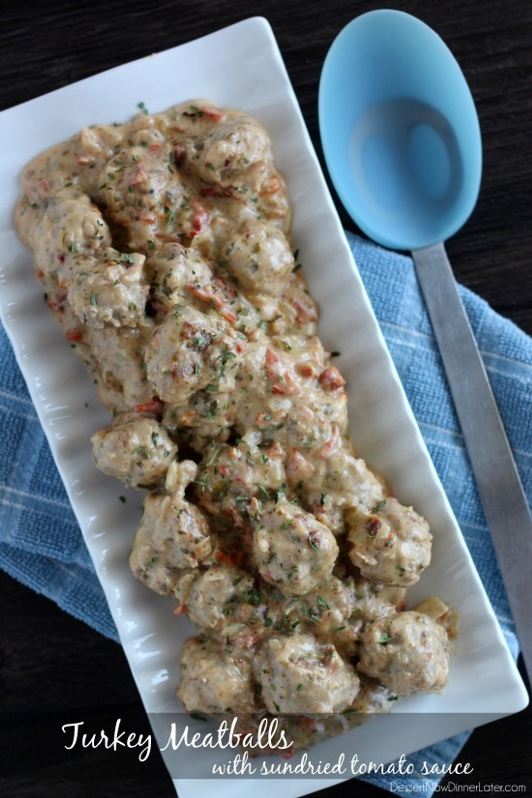 These turkey meatballs are bathed in a creamy sundried tomato and basil sauce, that is healthy, and has loads of flavor!