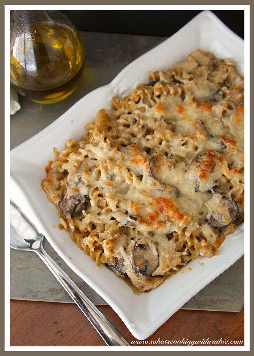 Turkey Mushroom Pasta Bake is an easy, creamy, savory dinner dish AND the yummiest way to use up leftover turkey.