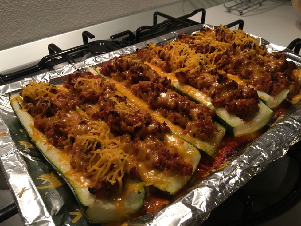 2. Using a small spoon (I used a teaspoon,) hollow out the centre of the zucchini halves, leaving...