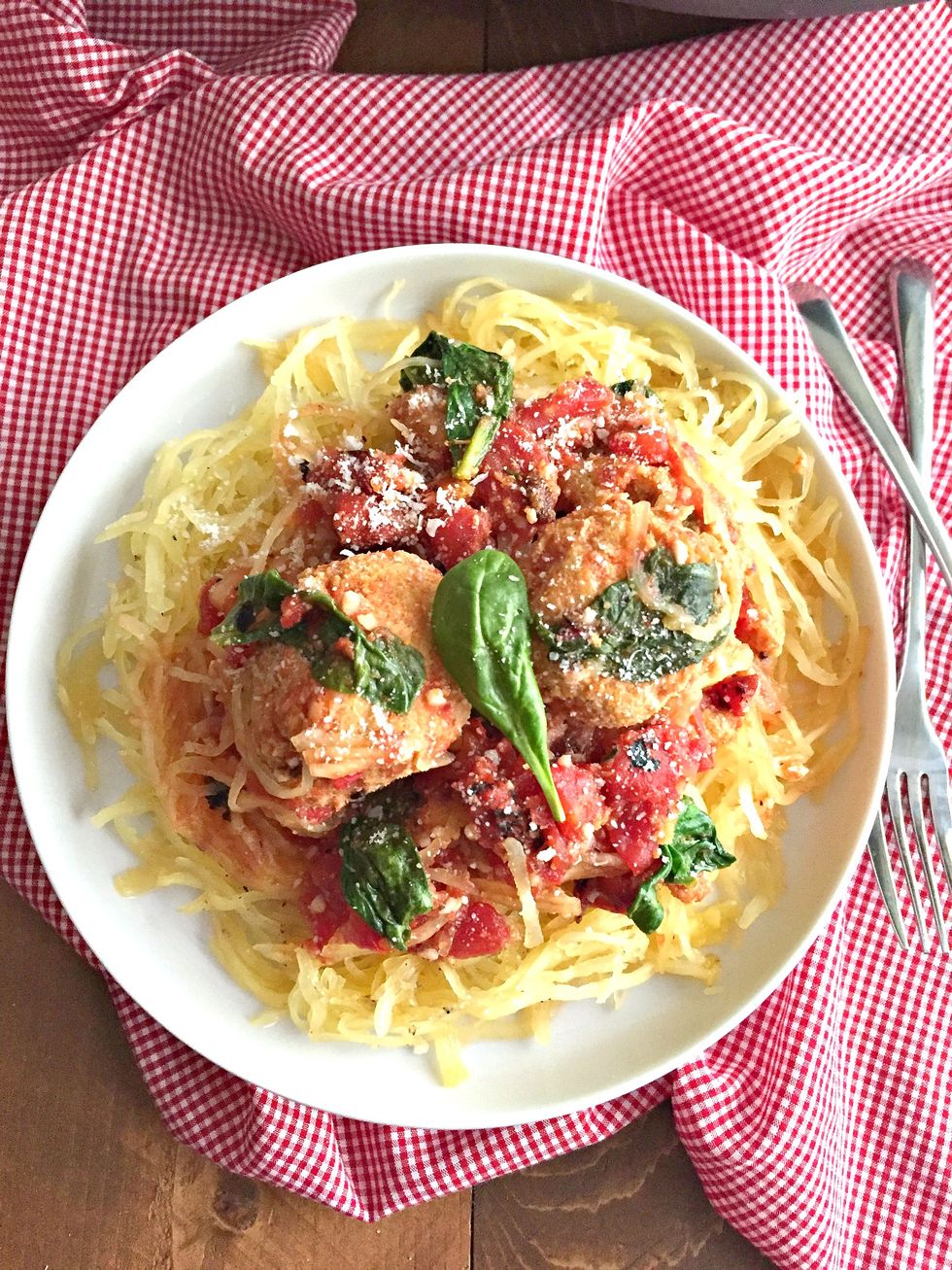 Turkey Veggie Meatballs With Spaghetti Squash packed with carrots, zucchini & onion and paired with spaghetti squash pasta making it paleo and gluten-free. A healthier and lighter alternative pasta dish.