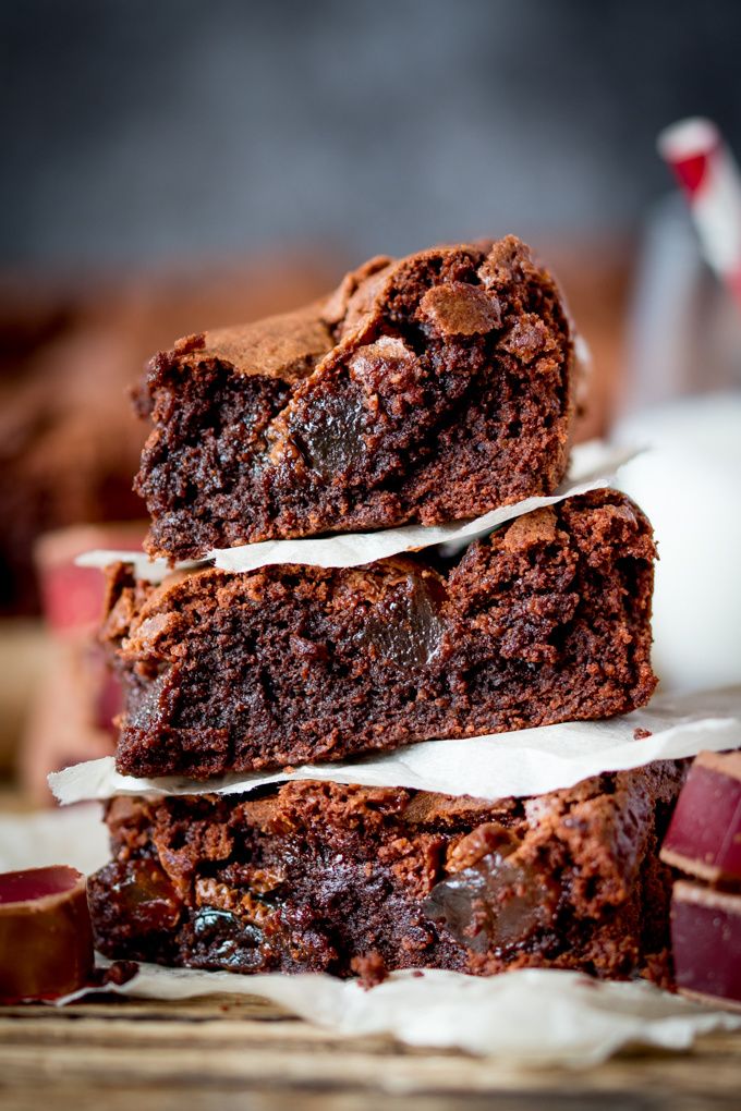Turkish Delight Brownies - squidgy chocolate brownies with a crisp, meringue-like top, stuffed with chunks of chocolate-covered Turkish delight.