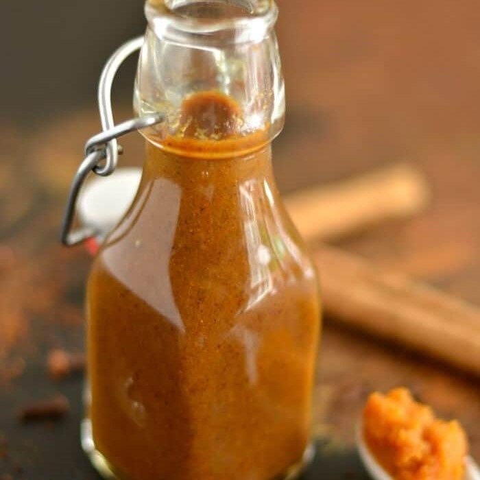 Low Sugar Turmeric Pumpkin Spice Coffee Syrup made with real pumpkin & comforting antioxidant rich spices. A syrup that adds flavor, not calories to your morning coffee! Store in the fridge for an easy addition to your morning routine. Gluten free + Low Calorie + Vegan + Paleo friendly