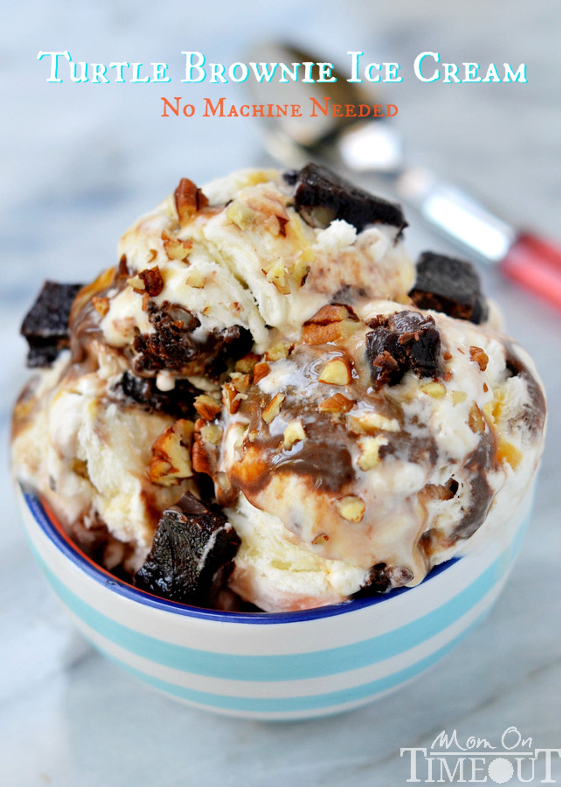 Satisfy those chocolate cravings and beat the heat with this totally decadent Turtle Brownie Ice Cream – no machine needed!