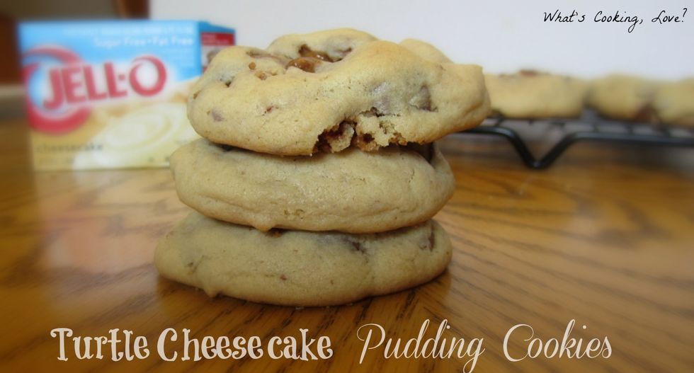 These cookies are so moist and delicious. They are made using cheesecake pudding and include pecans and Rolos.