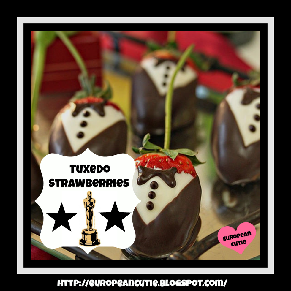 In honor of Oscar night....here is a great recipe supercute for a healthier dessert.....tuxedo strawberries!!!