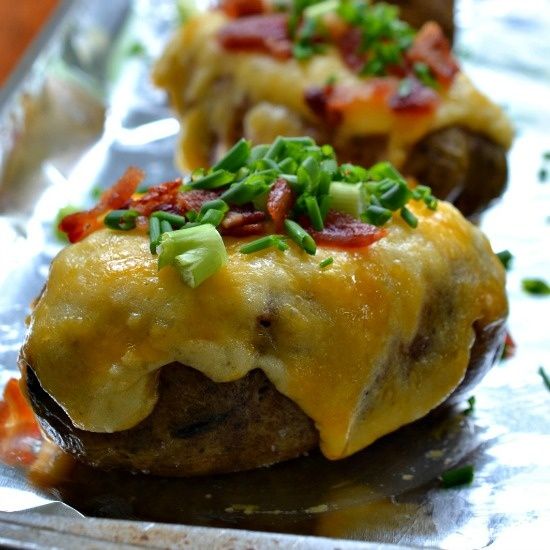 These easy Twice Baked Potatoes are the perfect side for steak, pork, fish and chicken. They are quick to come together and can be prepared in advance.