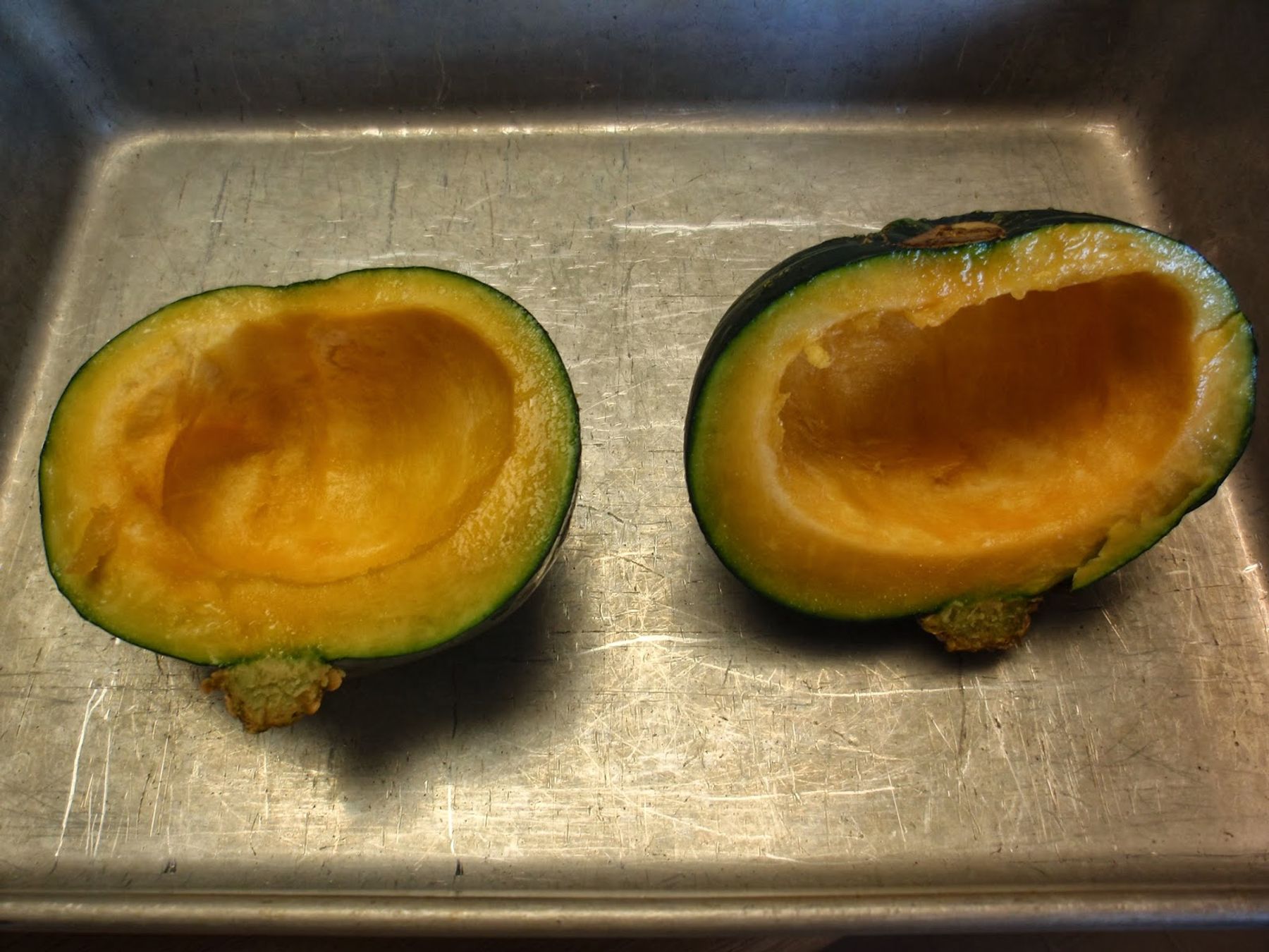 Wash the squash and cut it in half. Scoop out the insides and seeds. Place the squash on a baking sheet or in a baking pan. Bake at 350 degrees for one hour.